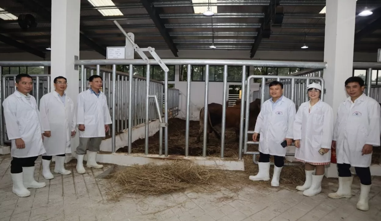 Đoàn công tác của Sở Nông nghiệp và PTNT Bắc Ninh thăm đàn bò đực giống tại trạm Moncada
