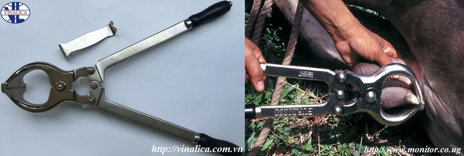– Mở kìm, kiểm tra lại xem thừng dịch hoàn đã bị dập nát hẳn chưa. Làm lại như vậy với thừng dịch hoàn kia nhưng ở vị trí lệch với lần trước khoảng l,5cm để tránh hoại tử bìu.