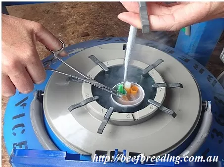 Chỉ cho tinh đông lạnh vào khi bình đã chứa đầy nitơ lỏng và các gáo đựng mẫu đã được làm lạnh bằng nitơ lỏng. Khi cho tinh đông lạnh vào bình, cần thao tác nhanh, chính xác, tránh để rơi vào trong bình. Khi lấy tinh đông lạnh ra nên kéo gáo đựng tinh tới bằng hoặc thấp hơn mặt phẳng miệng bình, sau đó dùng panh chuyên dụng để gắp tinh ra sử dụng (giải đông, thụ tinh nhân tạo …). Sau đó cần nhanh chóng hạ sâu gáo đựng mẫu vào trong bình để đảm bảo chất lượng tinh trong quá trình bảo quản lạnh. Đặc biệt lưu ý, việc đưa tinh đông lạnh vào trong bình hoặc đưa ra ngoài bình cần thực hiện ở nơi khô ráo, râm mát nhằm đảm bảo an toàn trong quá trình sử dụng bình nitơ (nếu thao tác dưới trời nắng nóng sẽ khiến lượng nitơ bay hơi hao hụt nhiều hơn; nếu thao tác dưới trời mưa hoặc khu vực ướt át sẽ dễ gây tai nạn bỏng lạnh, bỏng axit nitric HNO3, rất nguy hiểm cho người sử dụng).