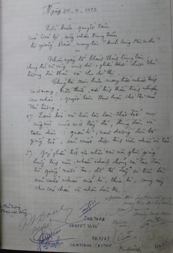 Cố Thủ Tướng Phạm Văn Đồng và Lãnh đạo Cuba trong bản Quyết Tâm tại ngày thành lập Moncada
